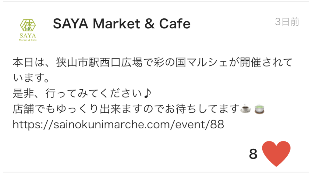 【さやまアプリ】店舗のつぶやきが表示されるようになりました【Ver 1.4.1】