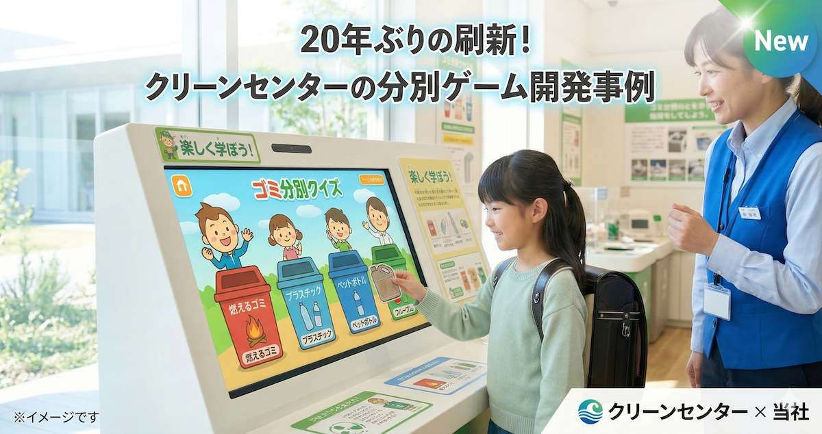 概要 地域の環境教育施設であるクリーンセンターでは、来館した子どもたちが楽しみながら「ゴミ分別」を学べるゲームが長年設置されていました。しかしそのゲームは20年以上前に開発されたシステムであり、現在では開発環境や技術者が …