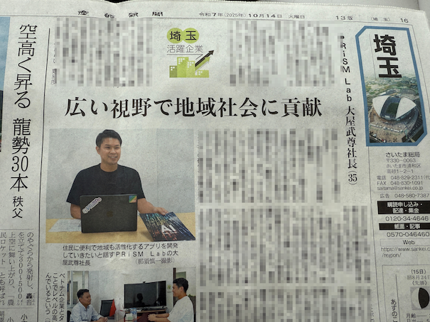 2025年10月14日(火) の産経新聞埼玉版及びウェブ「産経ニュース」にて当社の紹介記事を掲載していただきました。